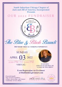The South Suburban Chicago Chapter of Jack and Jill of America, Incorporated invites all guests to join us on this exciting culinary virtual cooking experience. You can even cook with friends in your home! All proceeds from this event benefit and support Jack and Jill Foundation, college scholarships for high school Seniors, and chapter community service efforts. We hope to surpass last year’s amount, and make an even larger impact on our surrounding communities.