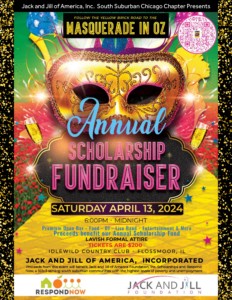 South Suburban Chicago Chapter of Jack and Jill of America, Inc. hosted an enchanted evening of elegance at the Masquerade in Oz fundraiser on April 13, 2024 at Idlewild Country Club. Chaired by Romina Brown and Michelle Lee, the event featured music by the incomparable JGrant Experience and DJ Willie Bell. Val Warner was the lovely Mistress of Ceremonies for the evening. All proceeds benefited the Jack and Jill South Suburban Chicago Chapter Scholarship Fund, the Jack and Jill of America Foundation, Inc. and Respond NOW, a charity serving the south suburbs.